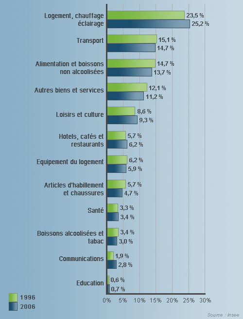 Le poste « logement » est le premier poste de dépense des Français devant les transports ou encore l'alimentation. En 10 ans et sur 12 postes, seulement 4 ont vu leur part de dépense augmenté et le « chauffage » est le 1er d'entre eux.