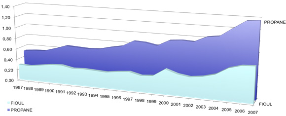 En vingt ans, le prix du fioul et du propane a augmenté de plus de 200 %, tandis que, sur la même période, le prix de l'électricité est resté stable.